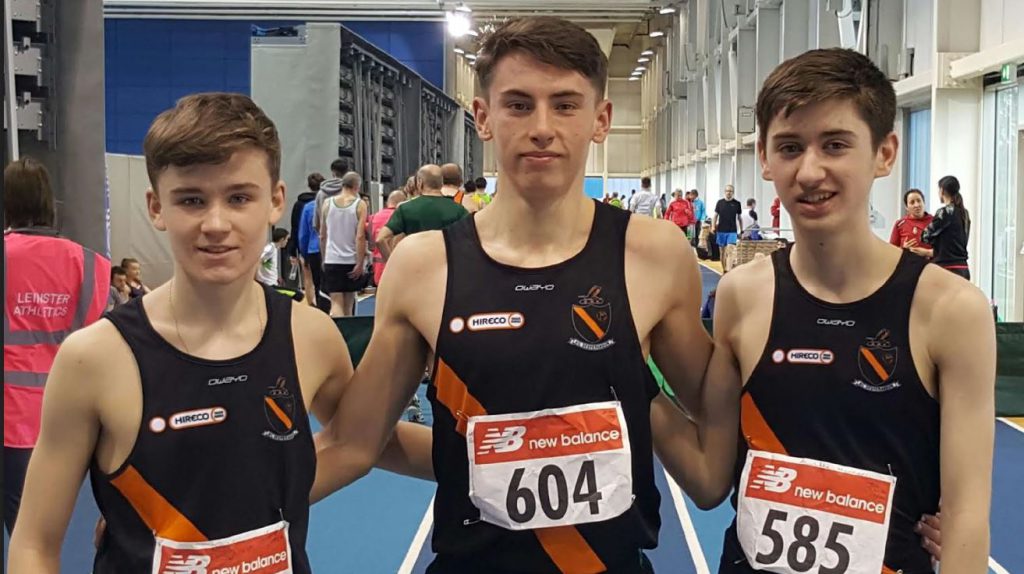 In the morning session a number of the club`s juvenile athletes (ages U/16 to 18) and juniors took a break from the cross country circuit to run indoors and all performed admirably. The junior boys 1500 saw all three athletes put in very strong runs: Craig Giles with a 4.11.35 run was a very strong 2nd, further back both Ben Guiden and Daniel Stone running as juniors for the first time were very solid finishing 4th (4.26.84) and 5th (4.27.31). Silver also for Alannah Cooley in the junior girls 1500 after a fine run in 4.58.07, younger sister Cliona battled gamely finishing 8th and will benefit from the experience. Later in the afternoon the 800s took place. Cian Bolger, an U/17 athlete, looked like a seasoned athlete in a bumpy physical race and ran an indoor pb of 2.02.50 in placing 5th. In race 2 Shane Ferris running his first race since last Summer ran a solid 2.05.11 to win with Conor Monahan further back in the pack (2.17.05). A good experience gainer also for Hannah Browne in the junior women`s 800 finishing in 6th place in 2.31.61.