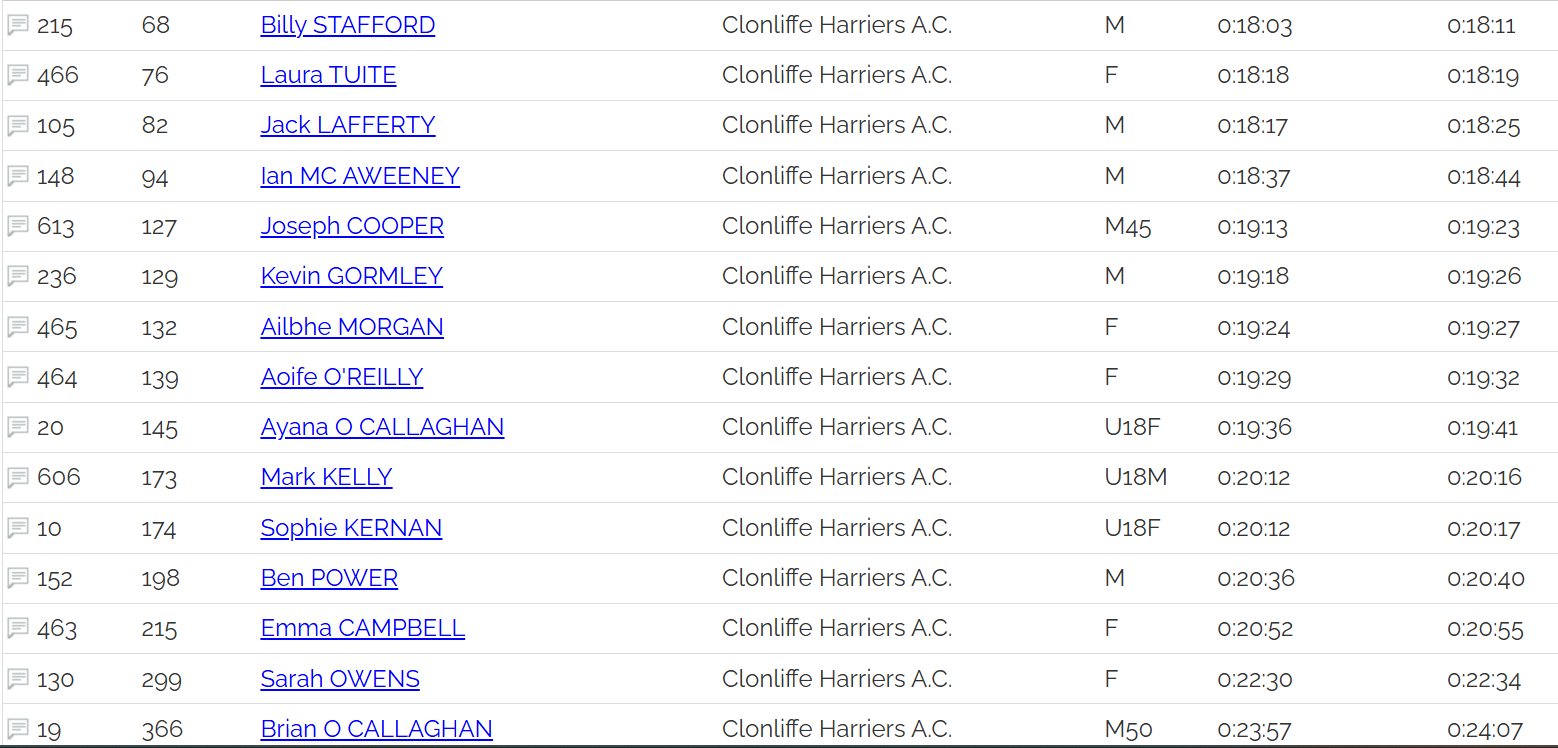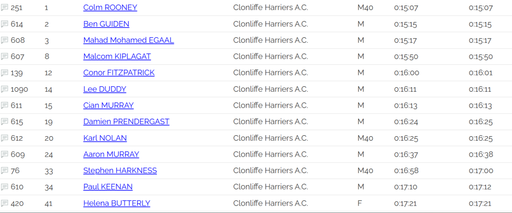 Clonliffe Tallaght 5k results: