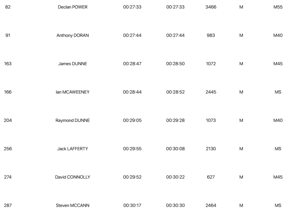 To complete a fine day for the club the men’s M40 team of Ger Clerkin, Mick McMahon and Declan Power took 2nd place.