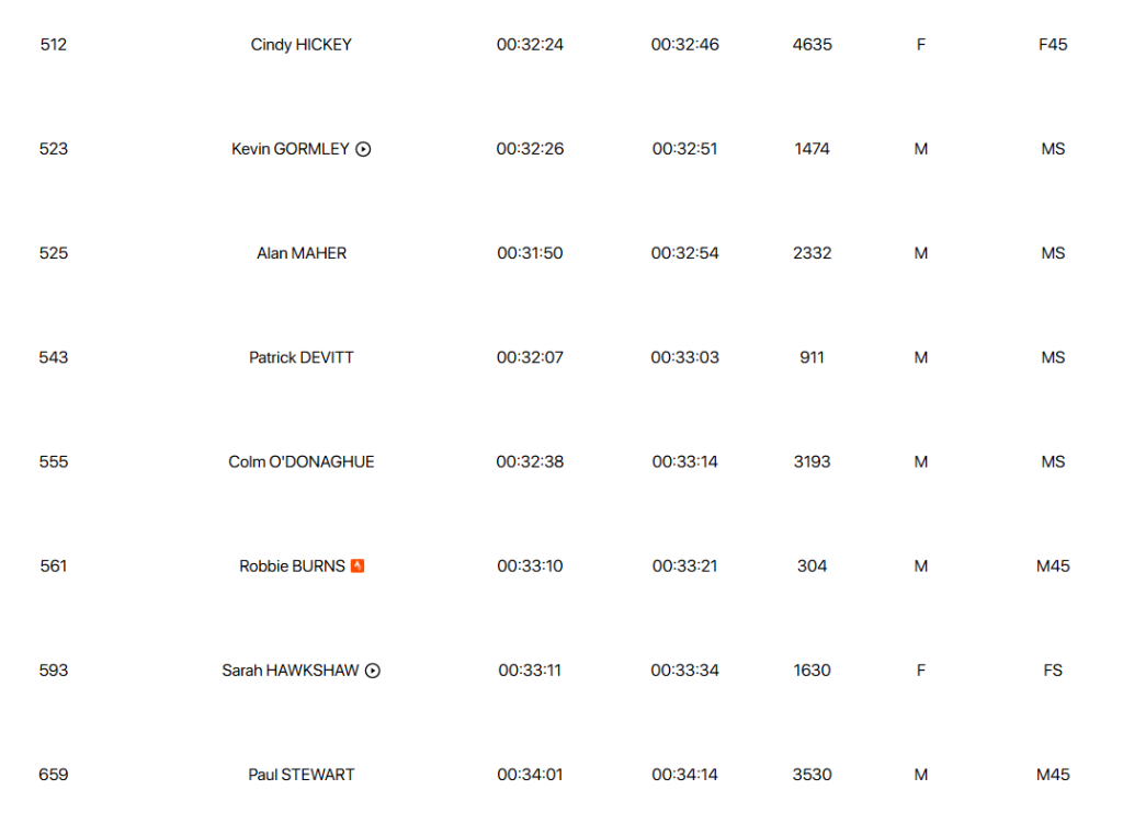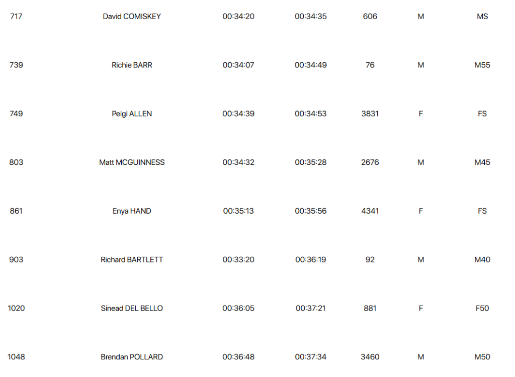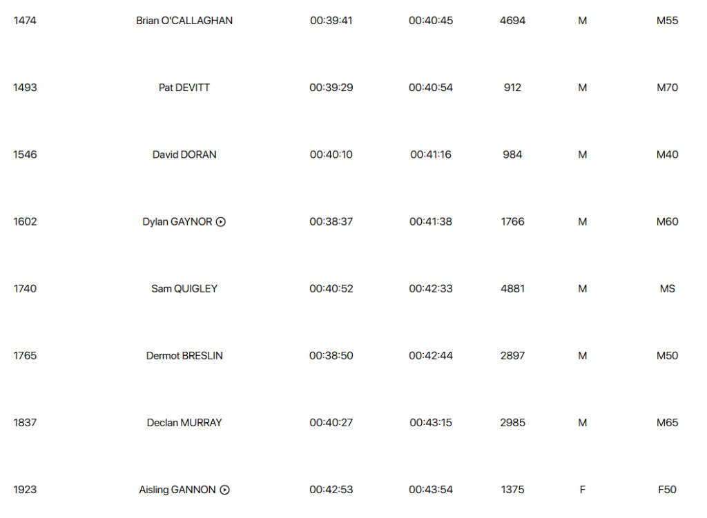 Individually, Cindy Hickey was 2nd W45, Ger Clerkin 3rd M45, Declan Power 1st M55 and Pat Devitt 1st M70.