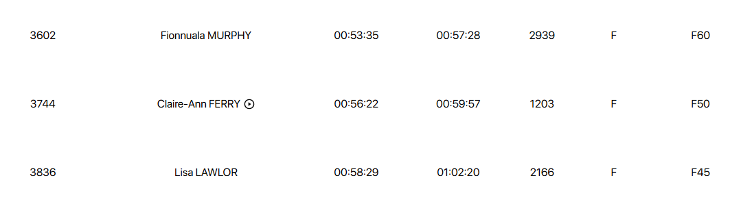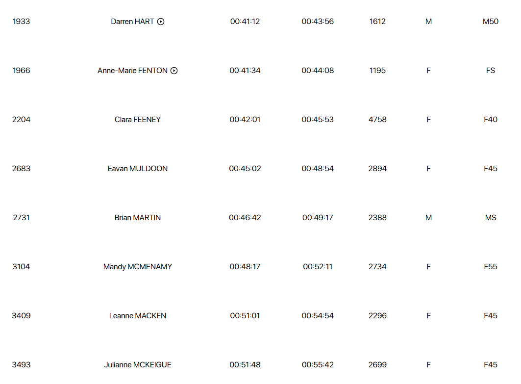 Individually, Cindy Hickey was 2nd W45, Ger Clerkin 3rd M45, Declan Power 1st M55 and Pat Devitt 1st M70.