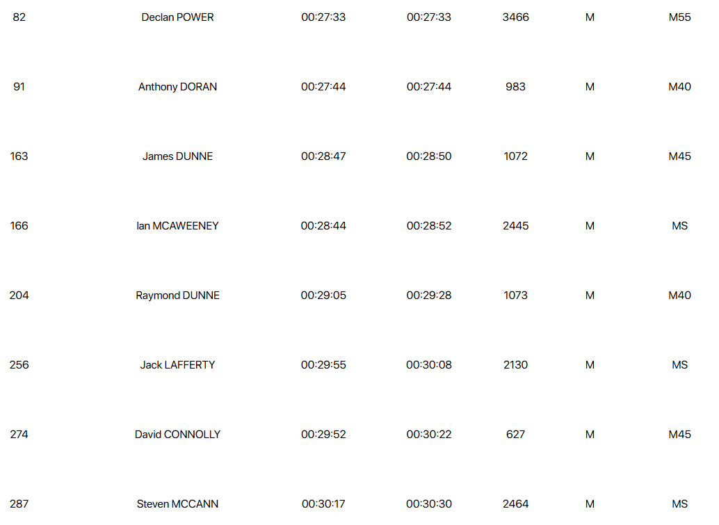 To complete a fine day for the club the men’s M40 team of Ger Clerkin, Mick McMahon and Declan Power took 2nd place.