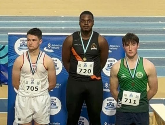 In the U15 Girls 60m Hurdles, Hannah Ni Mhuircheartaigh finished 3rd in her heat in 11.65 with Aliyah Riyad finishing 5th in 12.62. Julia Rzeszutko was 1st in Heat 2 in 9.88 and a Q to the final. Katelyn Duffy finished 6th in that heat in 13.93. Bronagh Hughes finished 6th in heat 3 in 13.03