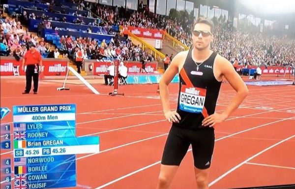 Clonliffe`s Brian Gregan suitably attired in his Clonliffe vest put in another sterling performance in the 400 on the World stage. At the Birmingham Diamond League Meet today, and featured live on the BBC, Gregan was 5th in 45.93, ahead of both Martyn Rooney (GBR) and Kevin Borlee (BEL), in what may well have been the first ever appearance of the Clonliffe vest at a Diamond League Meet.