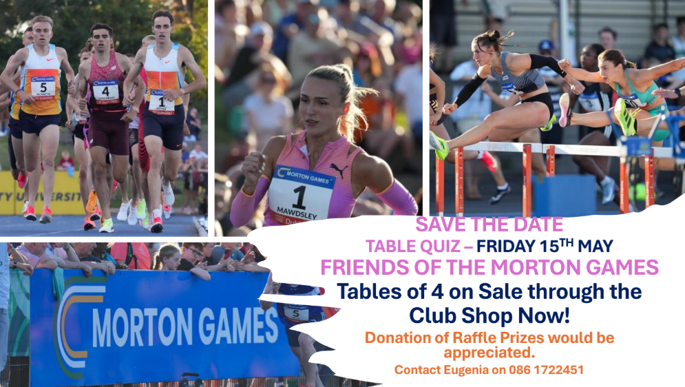 On Friday evening May 15, at 8 PM, the club will hold the Morton Games fundraising table quiz and also launch the Friends of Morton Games. Tables of 4 are now available at a cost of €50 and can be booked through the club online shop via the link below.
