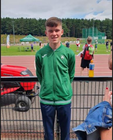 Young Sam Murray put in a very brave performance in today’s Schools International track and field at the Mary Peters Track in Belfast. This was the Clonliffe and St. Aidans man’s Irish debut and despite a fall at the water jump in the gruelling steeple chase, even more gruelling of course in the heat, he battled to a brave 6th place finish.