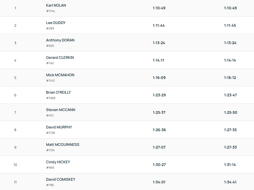 At the Bohermeen Half Marathon Karl Nolan in 13th, 4th M40, was the 1st Clonliffe finisher in a PB of 70.49, great runs also from Lee Duddy, 71.45 and Anto Doran 73.24, also a PB. These three along with Ger Clerkin made up the scoring 4 that took 3rd team. There were nearly 20 Clonliffe athletes running.